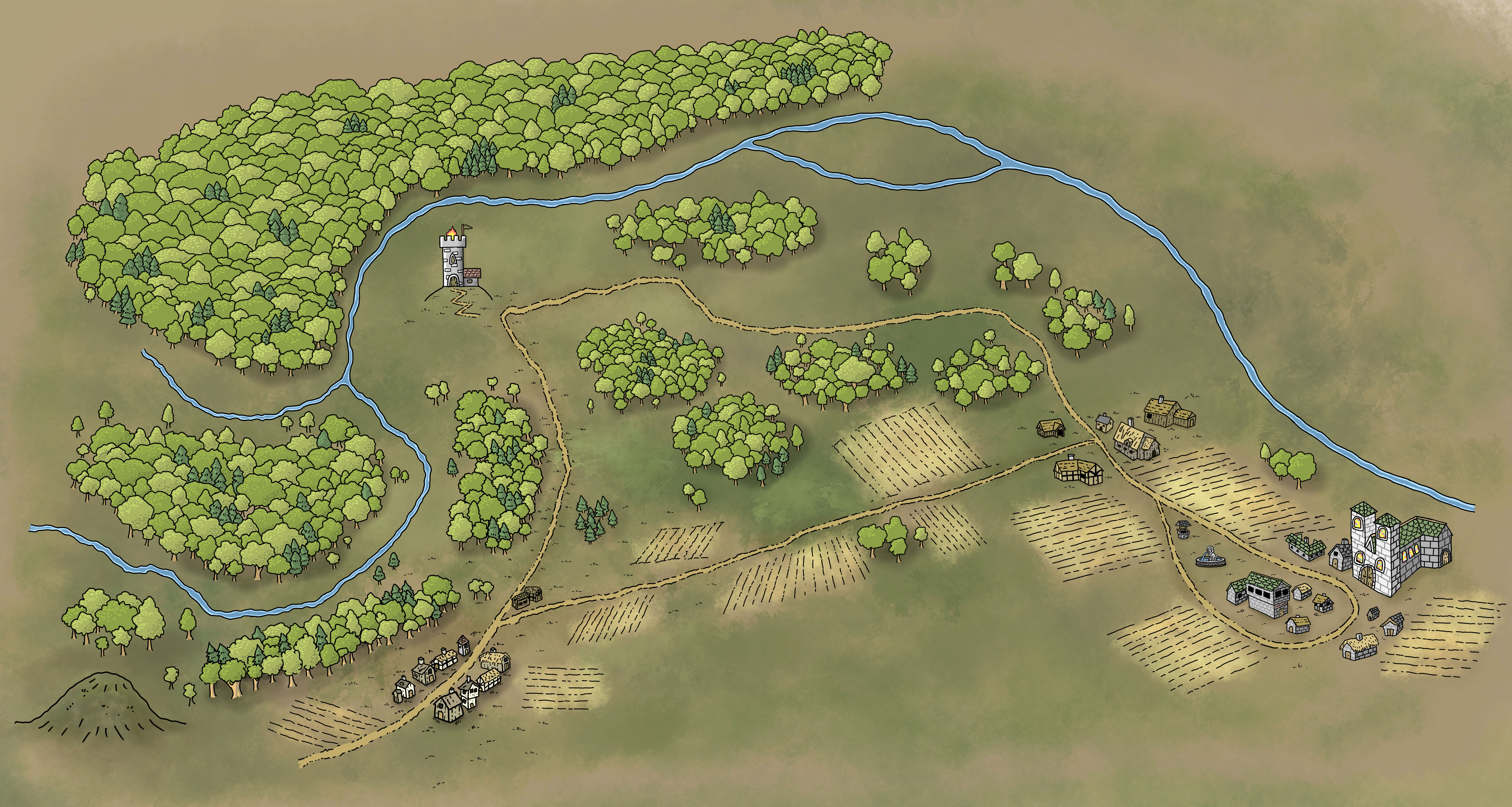 Below are a handful of recent maps I have hand-drawn, including some for Troll Lord Games. Click on each map to embiggen them! If you like what you see, you can commission me to draw maps for you.