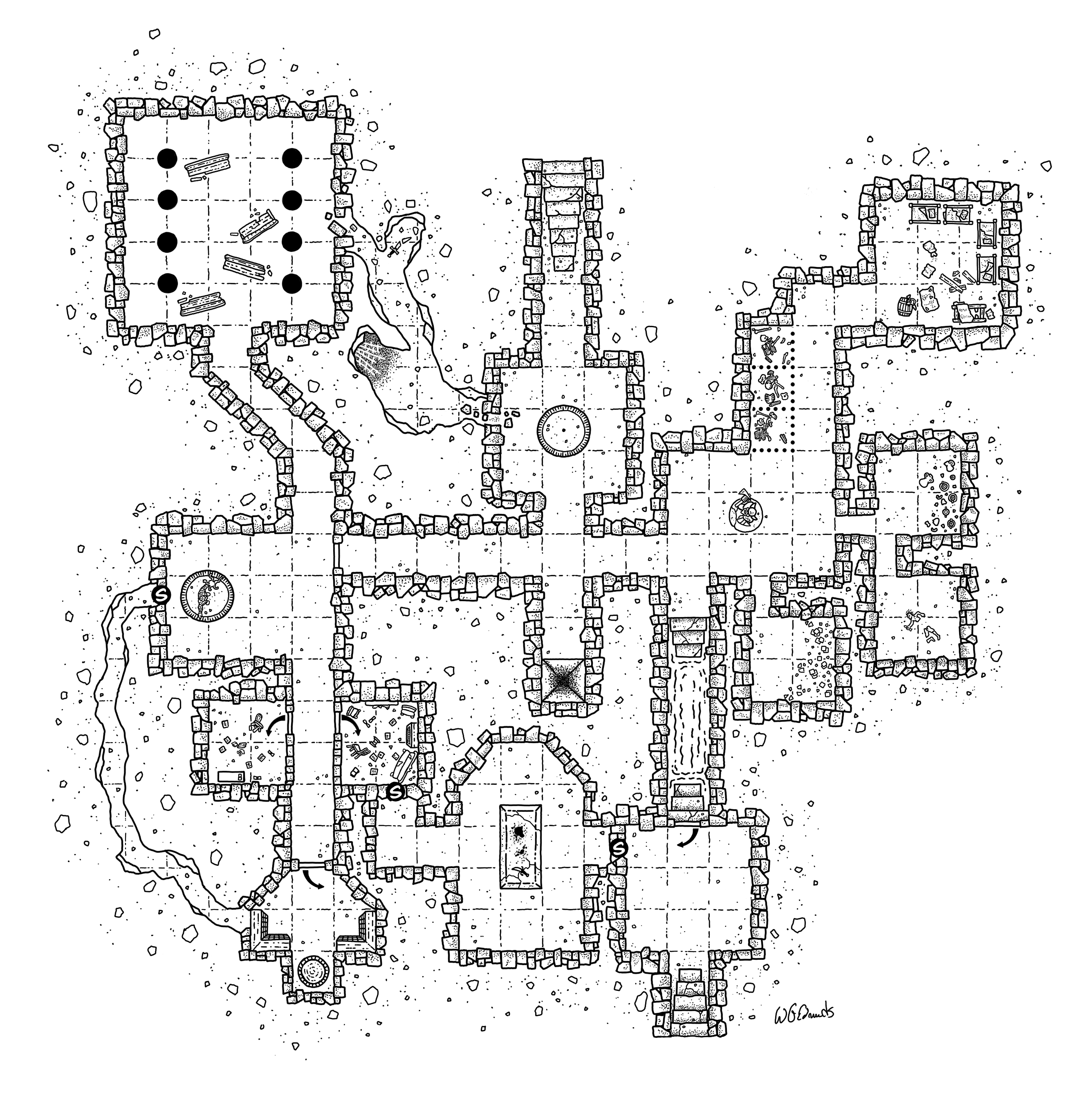 “Lion in the Ropes” region map for Troll Lord GamesThe city of Ludenheim for Troll Lord GamesThe Bog Inn for “Inn To The Deep”Hubbard’s Experimental Deathtrap Dungeon for “Inn To The Deep”Temple of the Dead Ram for “Inn To The Deep”“Turm-Um” for Troll Lord Games“Desert Hold of the Dawnfish” for Fehu GamesGalveston Tower for Troll Lord Games“Festung Akt” for Troll Lord Games